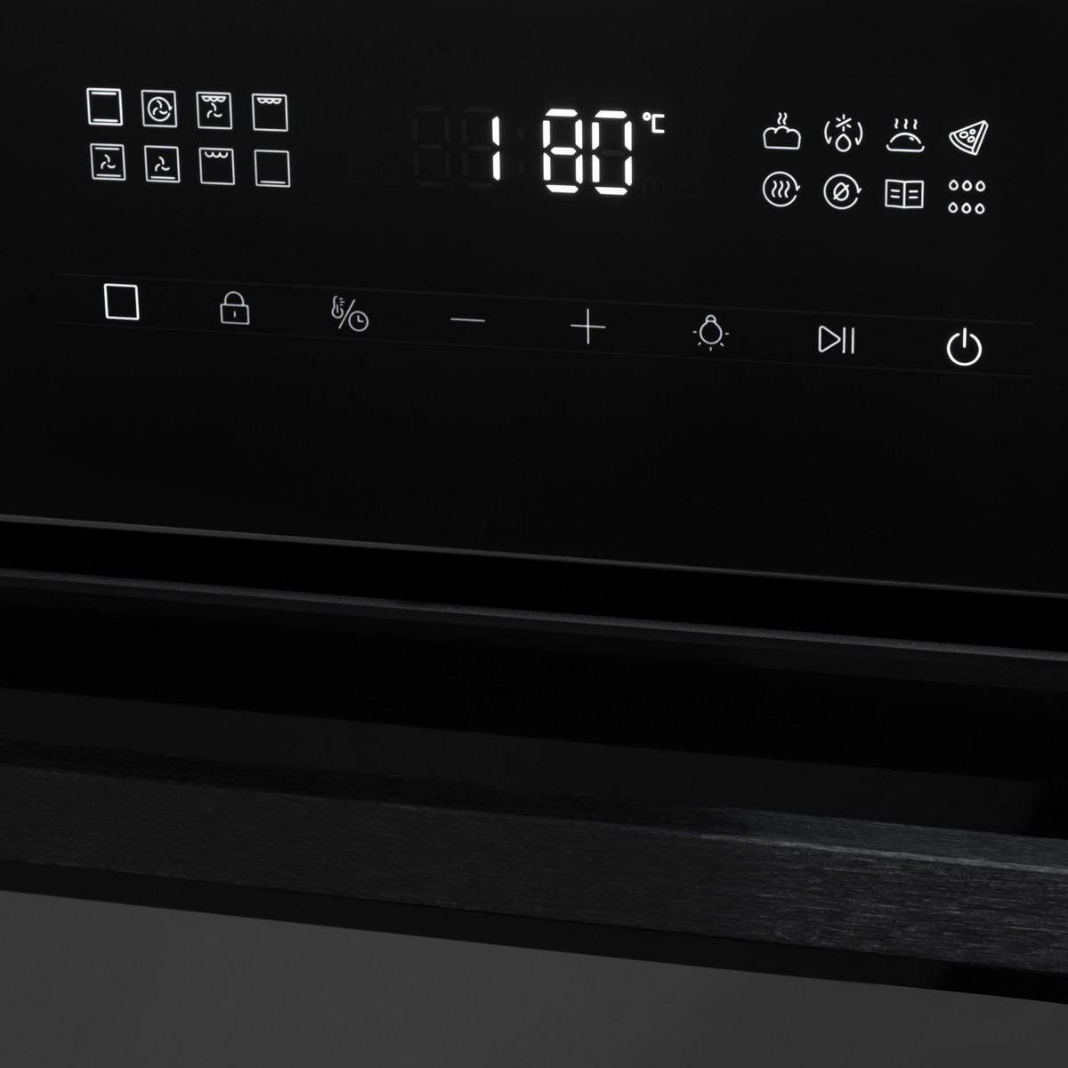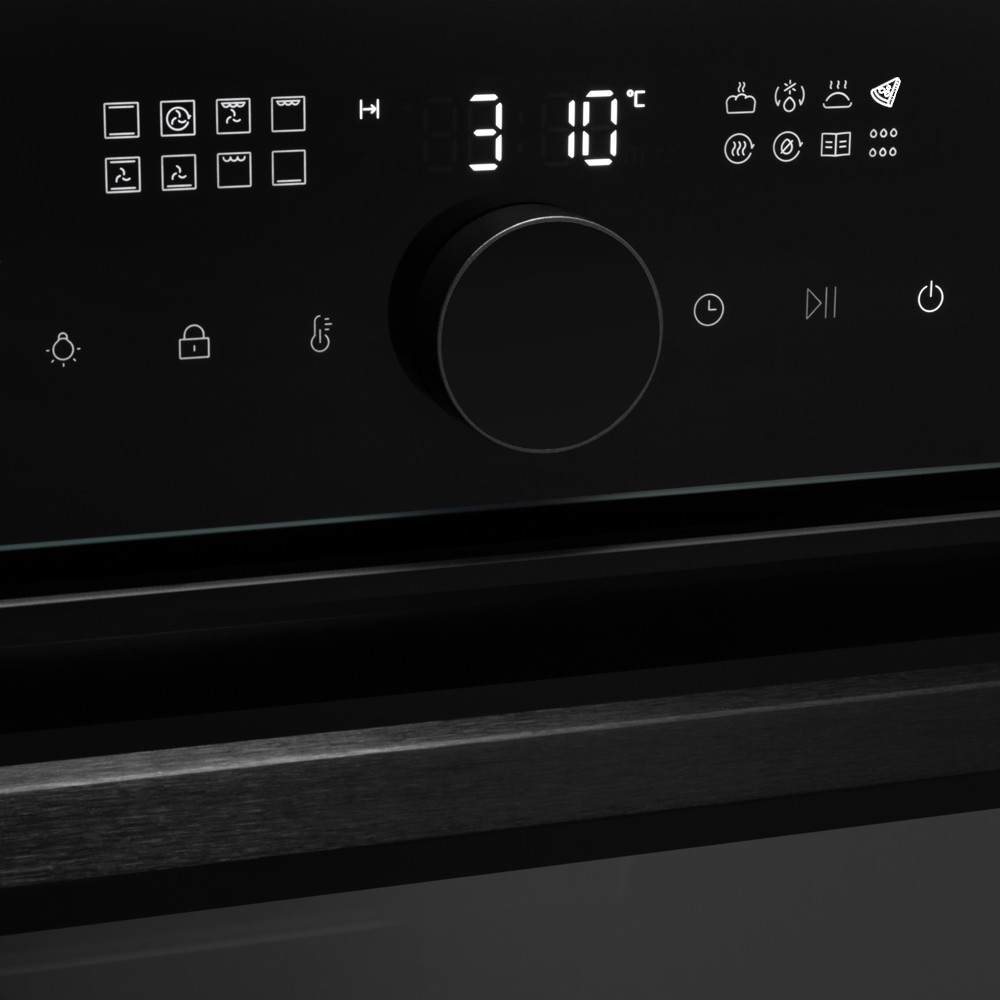 Режимы работы духовки: нижний нагрев, верхний нагрев, двухсторонний нагрев, гриль + конвекция, нижний нагрев + конвекция, двухсторонний нагрев + конвекция, размораживание