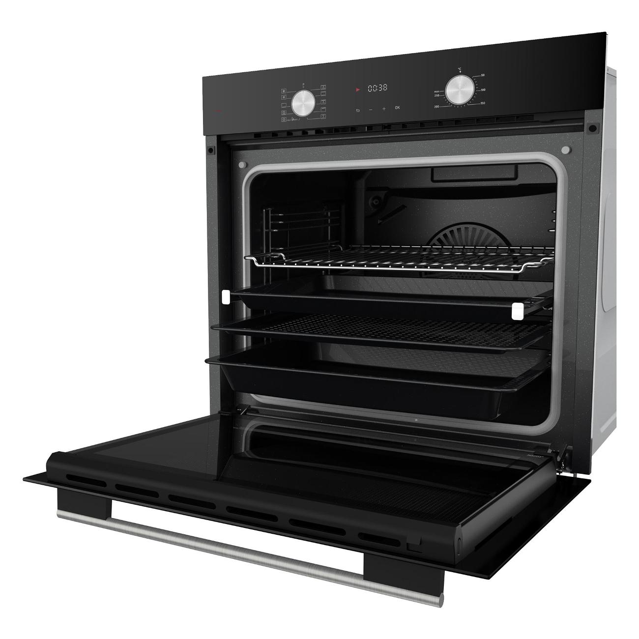 Многоуровневое приготовление. Отсрочка старта приготовления. Двойные стекла, внутреннее бесщелочное энергоэффективное Е-стекло. Съемная дверца.Режимы ТУРБО и ЭКО. Функция аэрогриль без масла/пицца/сушка мяса и фруктов FryArt. LED дисплей с белой подсветкой. Встроенная система автоматического охлаждения. Защитное отключение для безопасности. Таймер и будильник. Утапливаемые стальные поворотные ручки. Система 6 уровней решеток и телескопические направляющие. Очистка: гидролиз