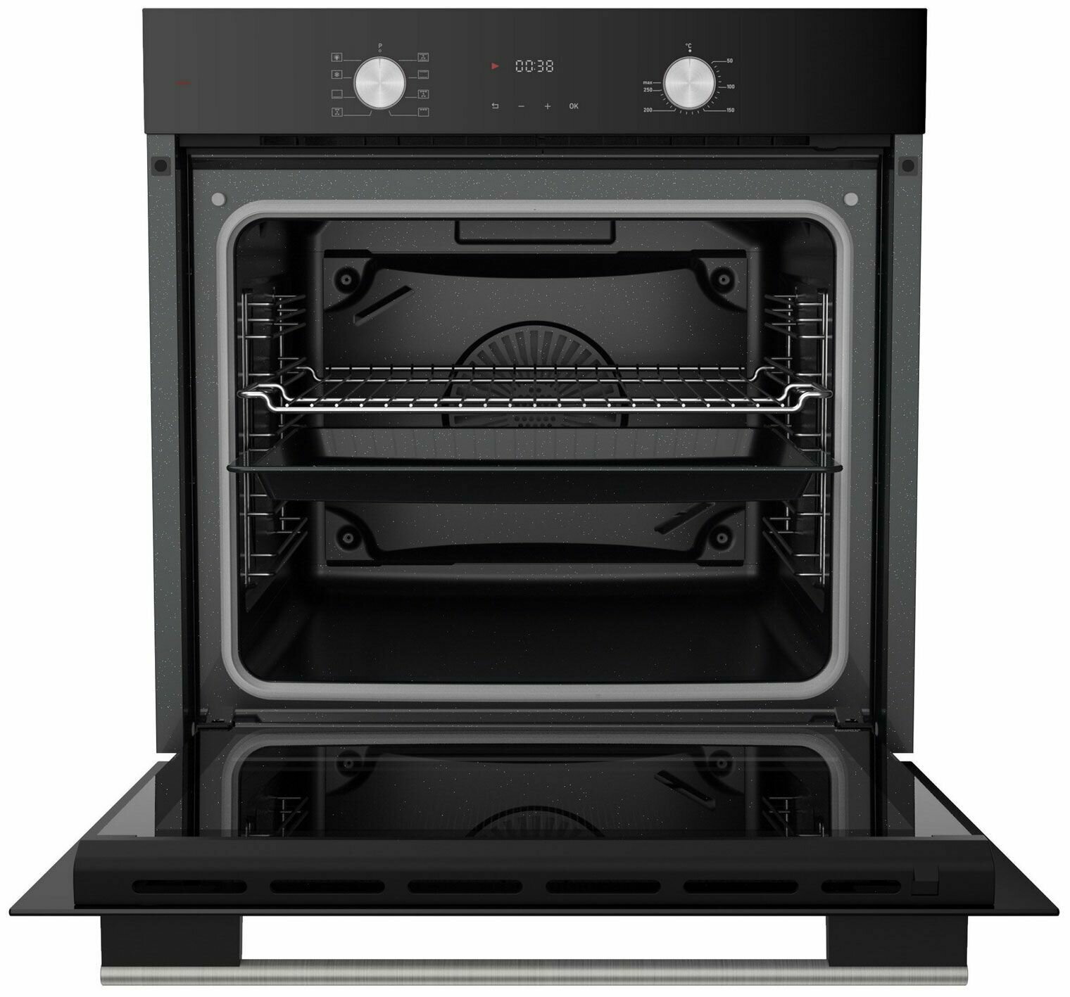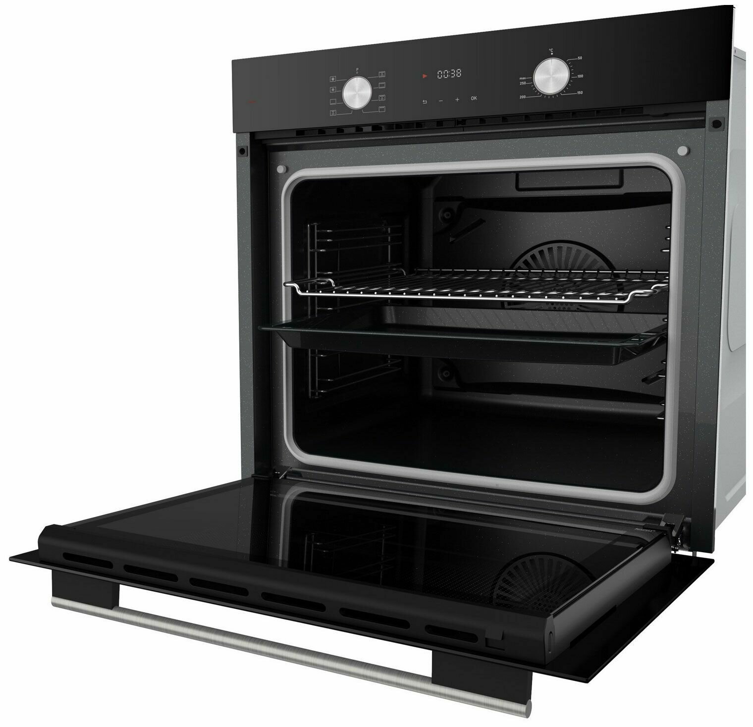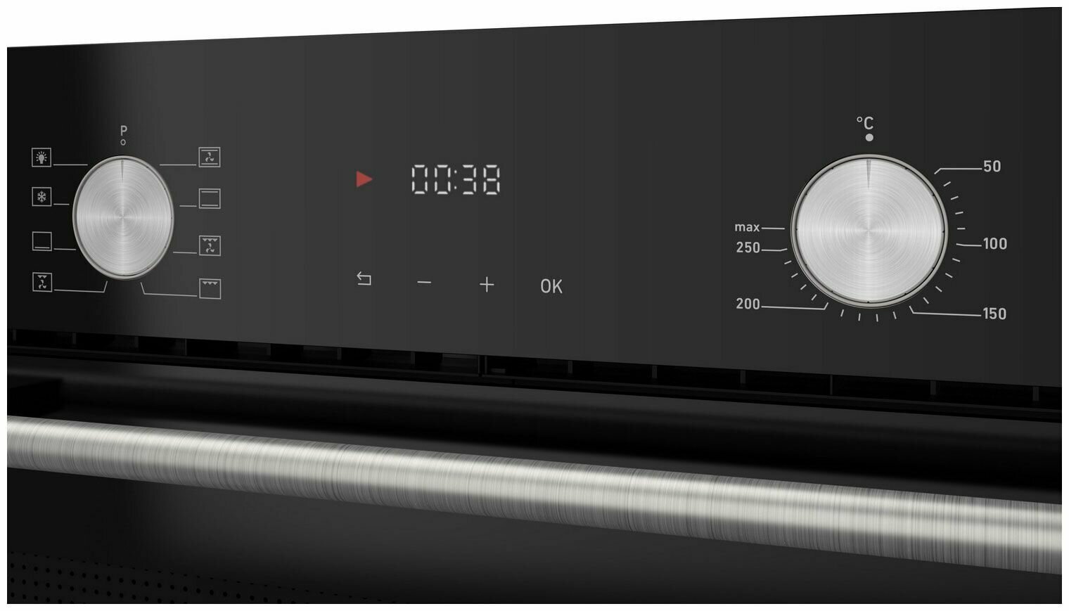 Многоуровневое приготовление. Отсрочка старта приготовления. Двойные стекла, внутреннее бесщелочное энергоэффективное Е-стекло. Режим ЭКО. Съемная дверца.LED дисплей с белой подсветкой. Встроенная система автоматического охлаждения. Защитное отключение для безопасности. Таймер и будильник. Утапливаемые стальные поворотные ручки. Система 6 уровней решеток. Очистка: гидролиз