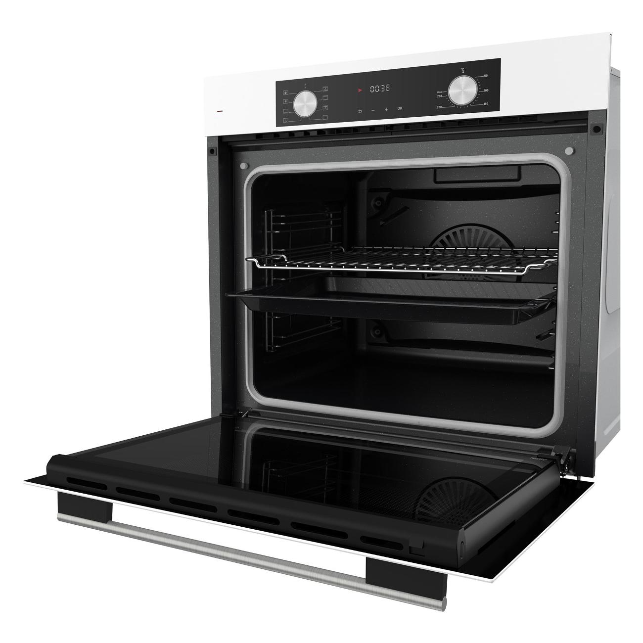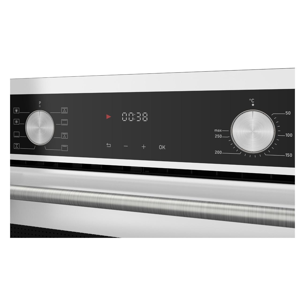 Многоуровневое приготовление. Отсрочка старта приготовления. Двойные стекла, внутреннее бесщелочное энергоэффективное Е-стекло. Режим ЭКО. Съемная дверца.LED дисплей с белой подсветкой. Встроенная система автоматического охлаждения. Защитное отключение для безопасности. Таймер и будильник. Утапливаемые стальные поворотные ручки. Система 6 уровней решеток. Очистка: гидролиз