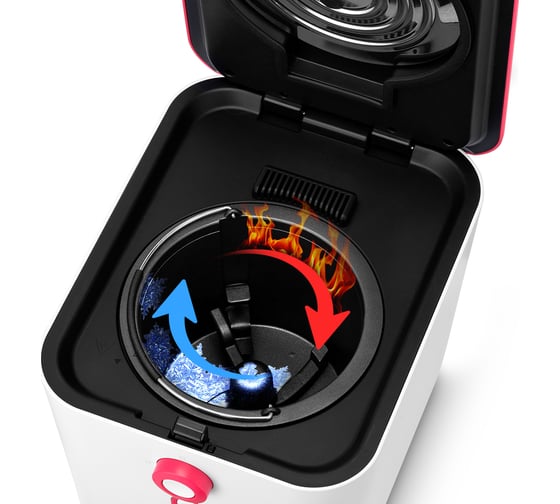 Процесс компостирования включает три стадии: сначала пищевые отходы сушатся под воздействием высокой температуры (95–105 °С), затем измельчаются и в конце охлаждаются. Фильтр с активированным углем поглощает неприятные запахи. Общее время компостирования составляет от 4 до 9 часов в зависимости от объема и типа пищевых отходов. Емкость ведерка составляет 3 литра, в результате компостирования объем пищевых отходов уменьшается более чем на 80%. В приборе также есть функция автоматической очистки ведерка.