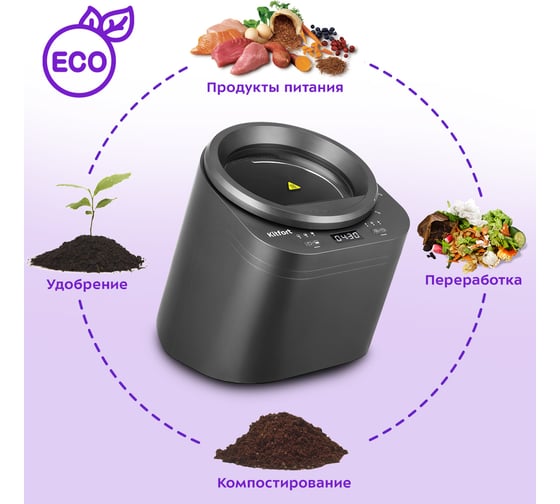 Кухонный компостер КТ-6394 — устройство, которое уменьшает объем пищевых отходов и позволяет использовать их для удобрения почвы.