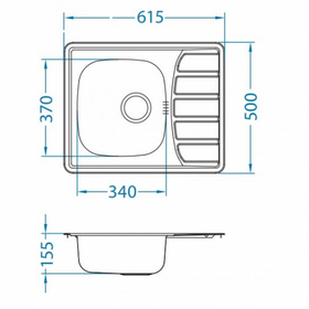 Размер мойки: 61.5x50 см