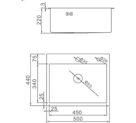 Кухонная мойка из нержавеющей стали WISENT 5044 50x44 см, с дозатором WS35044/W405A/WGER010 изготовлена из нержавеющей стали SUS304. Толщина листа чаши - 1 мм, толщина листа борта - 3 мм.