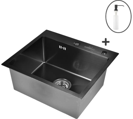 Кухонная мойка из нержавеющей стали WISENT 5044B с PVD покрытием, 50x44 см, с дозатором WS35044B/W405B/WGER010 изготовлена из нержавеющей стали SUS304. Толщина листа чаши - 1 мм, толщина листа борта - 3 мм.