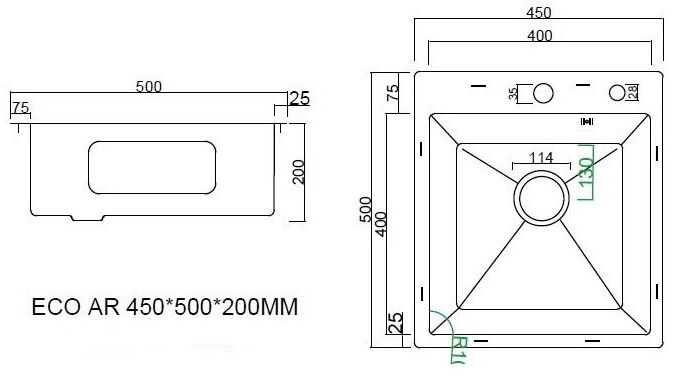 Отверстие под смеситель: да