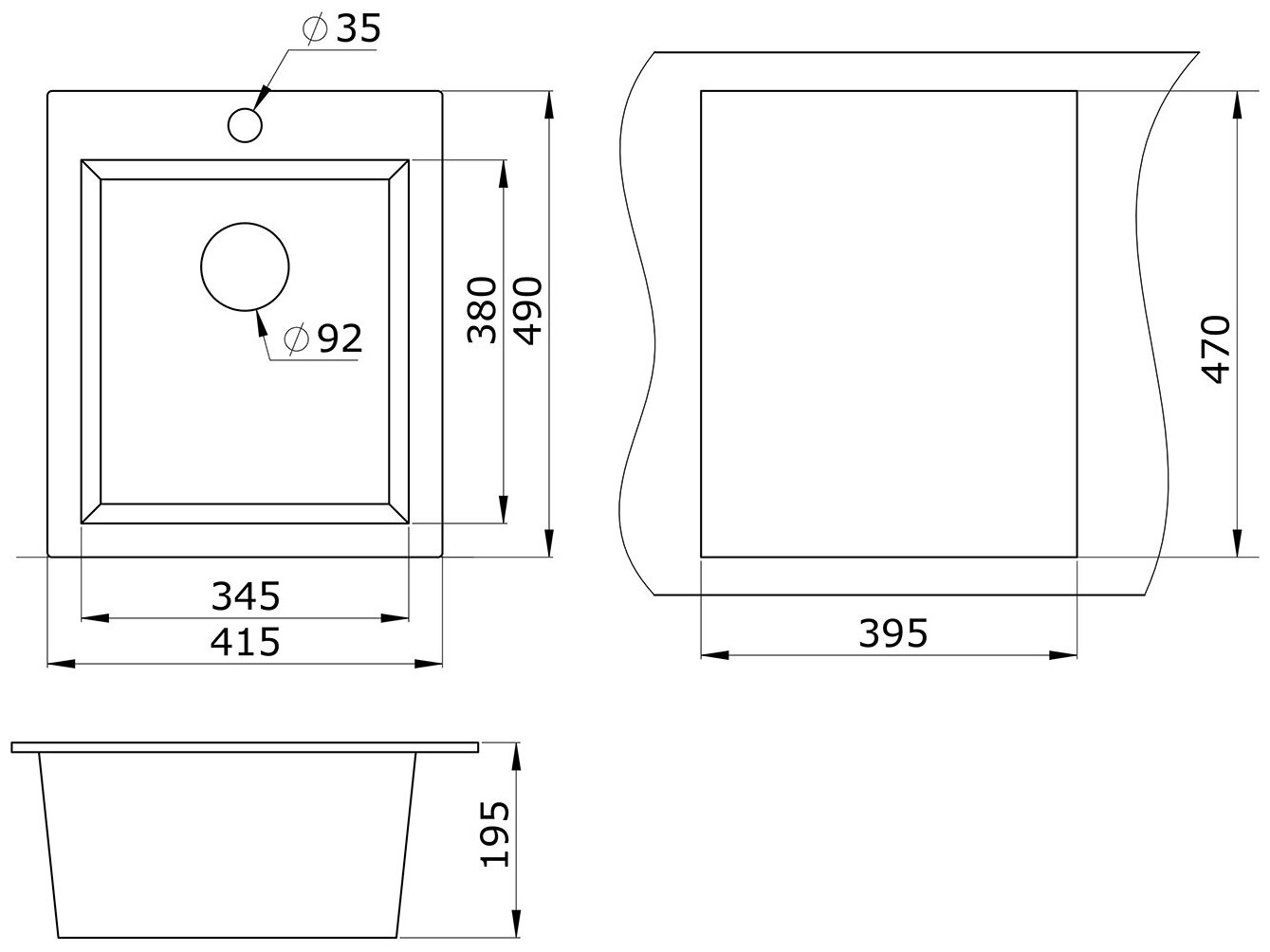 - Размеры чаши (ШхГхД)