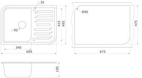 Размеры мойки (ДхШ)