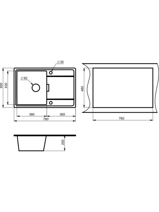 Размеры врезного отверстия (накладная) | 760x480 мм |