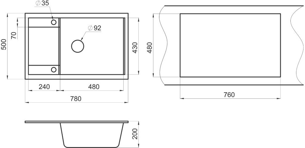 Размеры врезного отверстия (накладная) | 760x480 мм |