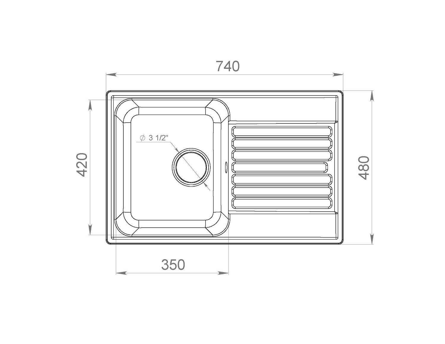 Реверсивная мойка (Отверстие высверливается в зависимости от расположения крыла)