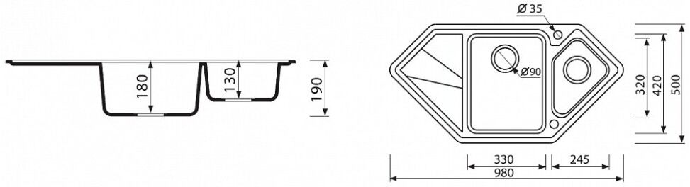 Форма мойки Трапециевидная / Угловая