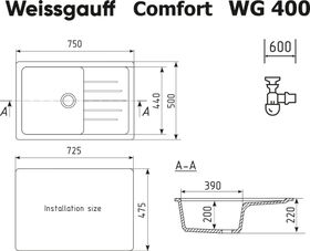 Габариты мойки, мм: 750 х 500