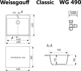 Габариты мойки, мм: 490 х 420