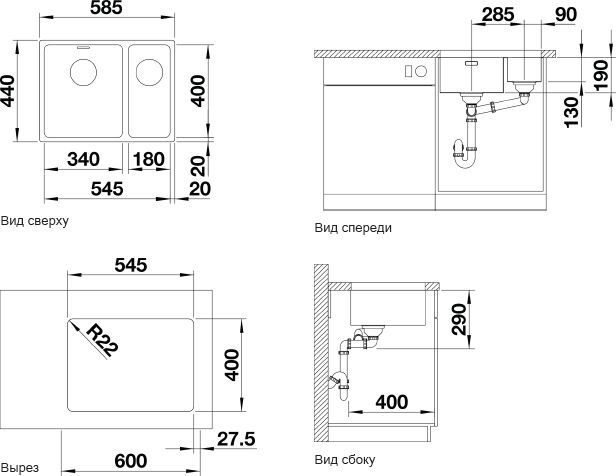 Выполнена из нержавеющей стали толщиной 0.9 мм с зеркальной полировкой и подходит для установки в кухонный шкаф шириной 60 см. Глубина чаши мойки составляет 19 см.