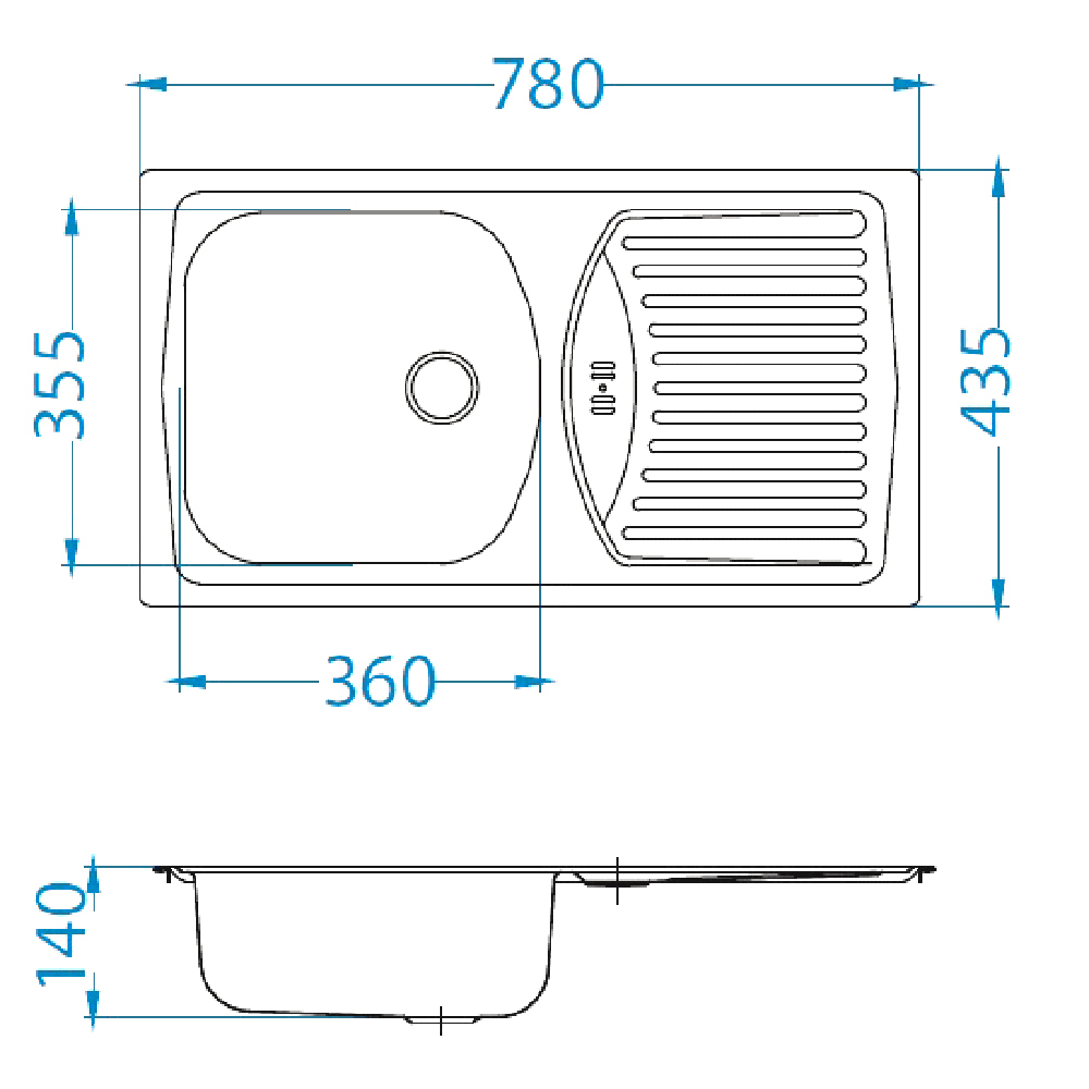 Размер мойки 78x43.5