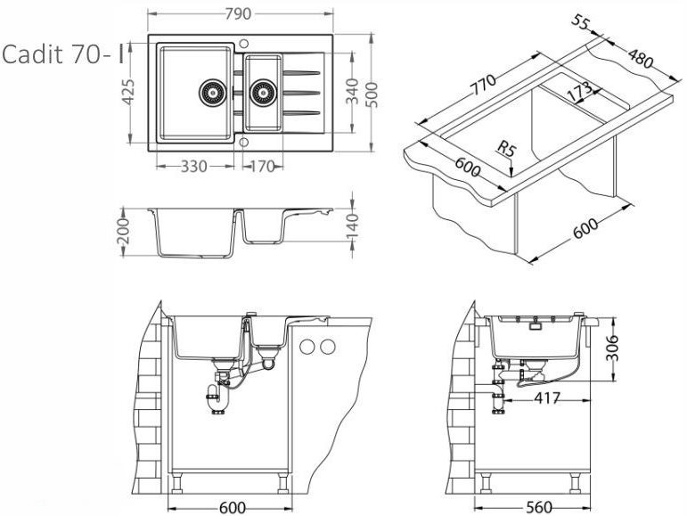 Размеры доп. чаши (ДхШхГ) | 170x340x140 мм |