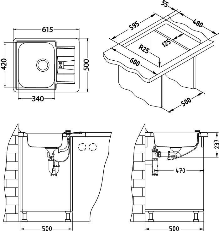 Кухонная мойка Alveus Line 60 NAT практична, элегантна и очень удобна. Прямолинейный четкий дизайн с небольшим радиусом скругления углов обеспечивает абсолютный комфорт при работе с мойкой