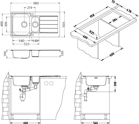 Размеры врезного отверстия (накладная) | 958x478 мм |