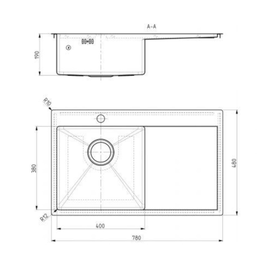 Внутренний радиус закругления углов чаши - 12 мм, что придает мойке современный вид.
