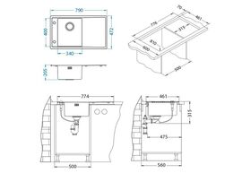 - Борт мойки находится на одном уровне со столешницей / встраивается выше уровня столешницы