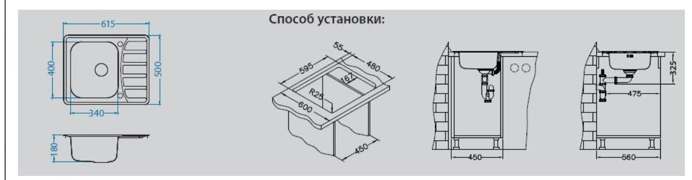 Размер мойки 61.5x50