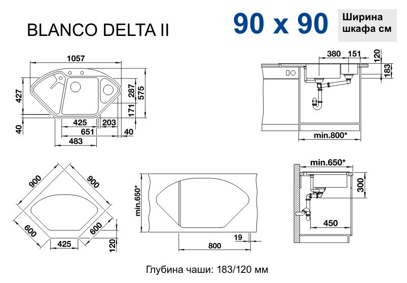 Мойка Blanco Delta II выполнена из искусственного камня Silgranit PuraDur высокого качества и подходит для установки в кухонный шкаф шириной 90 см. Глубина чаши мойки составляет 18 см.