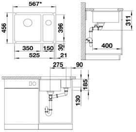 монтаж под столешницу, в комплекте отводная арматура InFino