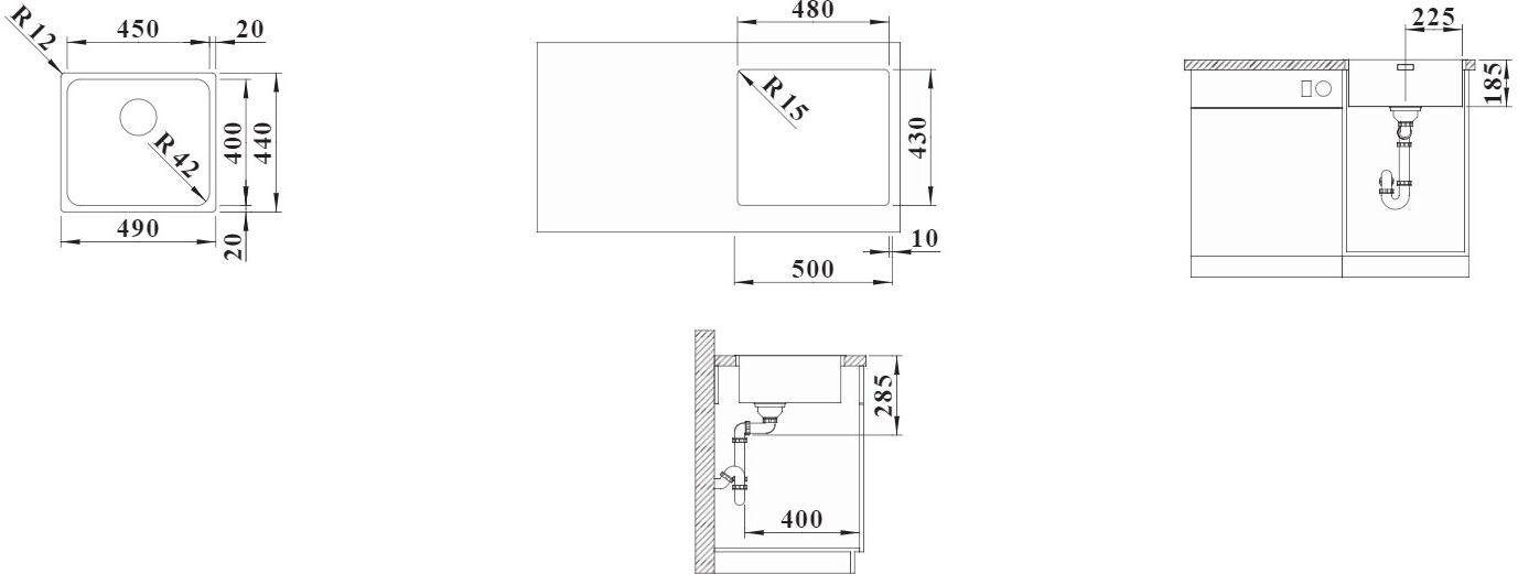 Размеры врезного отверстия (накладная) | 480x430 мм |