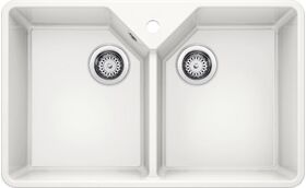 Мойка Blanco Villae Farmhouse Double выполнена из керамики и подходит для установки в кухонный шкаф шириной 80 см. Глубина чаши мойки составляет 19,5 см. Стильная и вместительная мойка с двумя чашами.