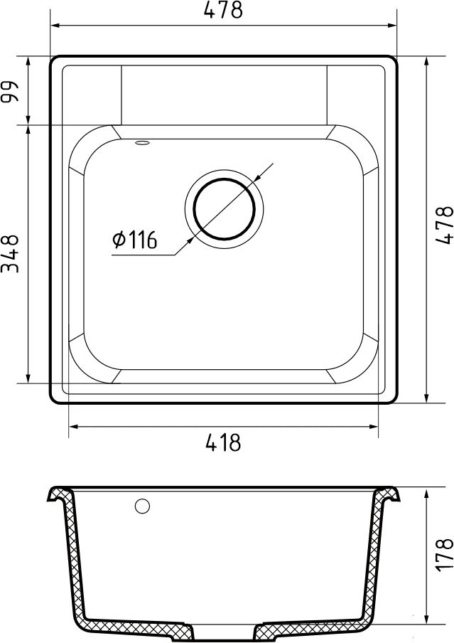 Мойка для кухни GranFest Quarz GF-Z48 – это простая и лаконичная модель, которая идеально впишется в помещение практически в любом стиле – начиная от классики и заканчивая лофтом. Цветовая палитра включает в себя 6 спокойных оттенков, напоминающих о природе и привносящих в пространство ощущение гармонии. Тренд на натуральность поддерживает и легкая текстура камня. Мойки для кухни GranFest Quarz сочетают в себе высокое качество и прекрасные потребительские характеристики: • ударопрочность; • устойчивость к царапинам; • отсутствие пористости; • устойчивость к воздействию высоких температур (мойки выдерживают перепады температур от -40 до +242 °C); • антибактериальные свойства (на поверхности мойки не размножаются бактерии); • гидрофобность; • защиту от воздействия красящих веществ. Несмотря на свою компактность, мойка для кухни GranFest Quarz GF-Z48 имеет достаточно глубокую квадратную чашу. В ней удобно мыть формы для запекания, кастрюли и даже большие сковороды. Модель оснащена площадкой под смеситель и аксессуары. В качестве материала изготовления используется кварцевый композит, обеспечивающий повышенную прочность и долговечность мойки.