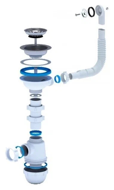 Перелив, отверстие под смеситель,сливная арматура,измельчитель пищевых отходов