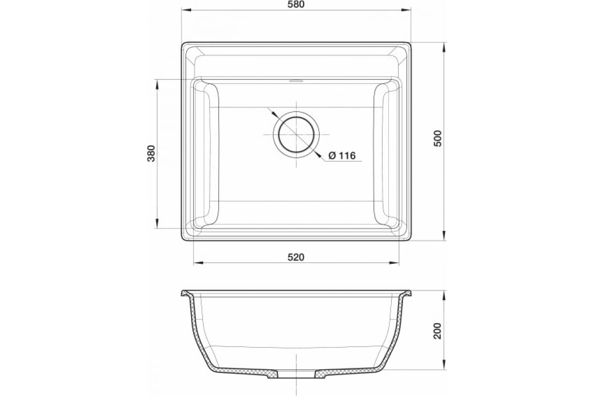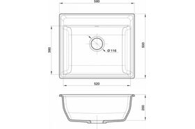 Технические характеристики GranFest VERTEX мрамор 1-чаша, 580х500 мм., черный