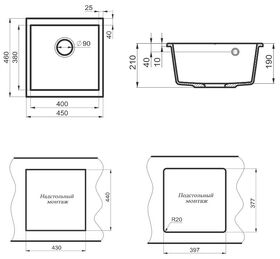 Универсальный монтаж ( на столешницу, под столешницу, вровень со столешницей). Монтажная ширина, см (подстольный монтаж / врезной монтаж ) - 39.7/43