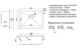 Монтаж вровень со столешницей / встраиваемый сверху / встраиваемый снизу