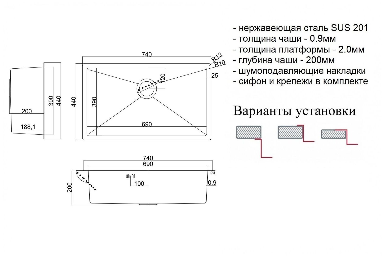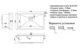 Кухонная мойка Steel Hummer SH 7444 - это мойка ZorG толщиной стали 0.9 и плоским кантом 2 мм. Возможен как врезной, так и подстольный монтаж. Верхняя платформа мойки Steel Hammer выполнена из нержавеющей стали толщиною 2 мм, что позволяет мойке идеально ложится на поверхность столешницы и иметь более эстетичный внешний вид без загибов кромки. Чаша мойки Steel Hammer выполнена из нержавеющей стали толщиною 0.9 мм, что делает ее более прочной и тихой в эксплуатации. Стенки чаши имеют небольшой уклон. Скругленные внешние и внутренние углы также придают мойке Steel Hammer более эстетичный внешний вид и облегчают уход за поверхностью столешницы в районе углов мойки. Неприхотливые в эксплуатации, надежные и долговечные мойки Steel Hammer привнесут в вашу жизнь надежность и спокойствие.