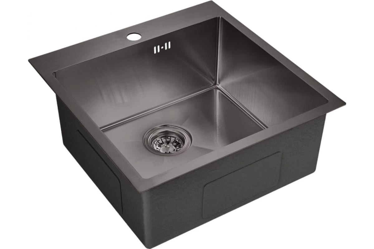 Мойка EMAR универсального монтажа EMB-116 PVD Nano Dark. Размер слива — 114 мм. Мойка сварная, универсального монтажа. Марка стали , из которой произведена мойка - 304. С нижней стороны и по бокам есть шумопоглощающие накладки.