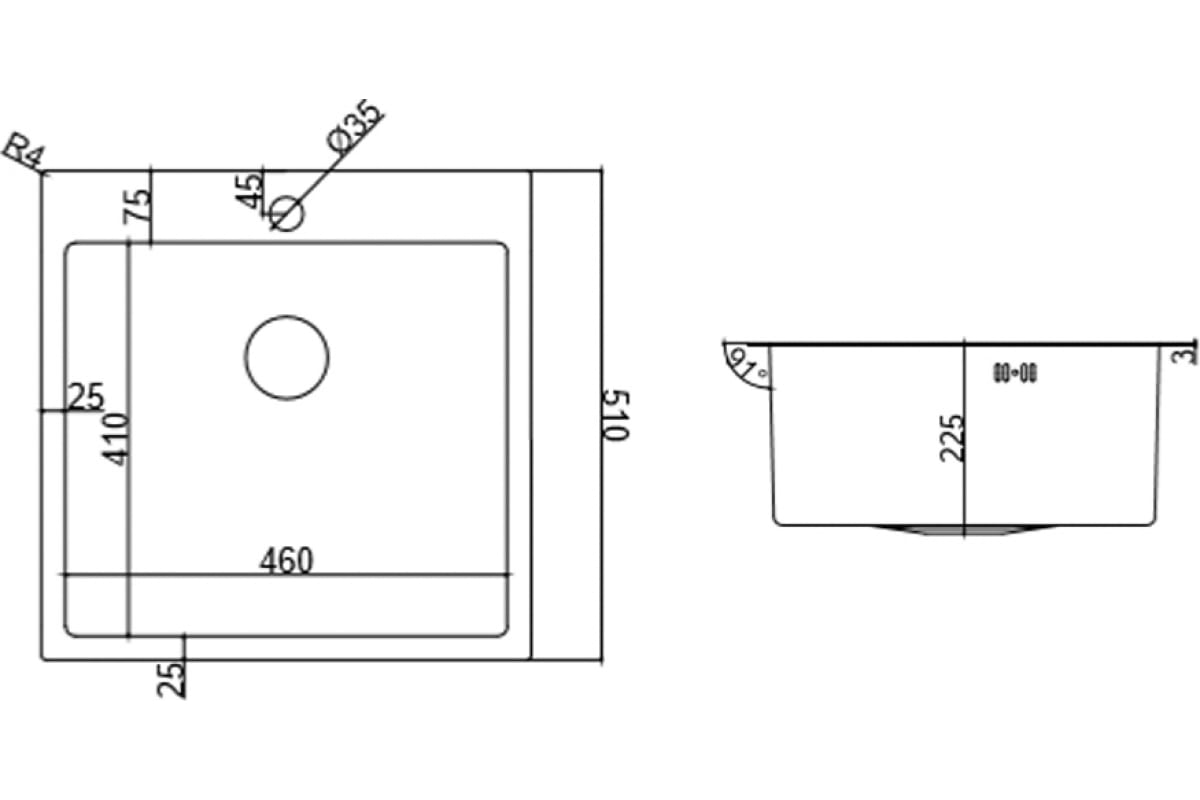 225 мм
