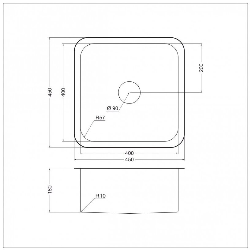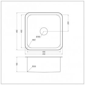 Вес мойки в коробке с комплектующими: 2,5 кг, вес нетто: 2.0 кг. Объем: 0,04 cbm. Размер слива — 114 мм. Мойка универсального монтажа. Толщина стали: 0.8 мм. Глубина: 180 мм. Сама мойка имеет одну большую чашу. Смеситель для мойки устанавливается на столешницу.