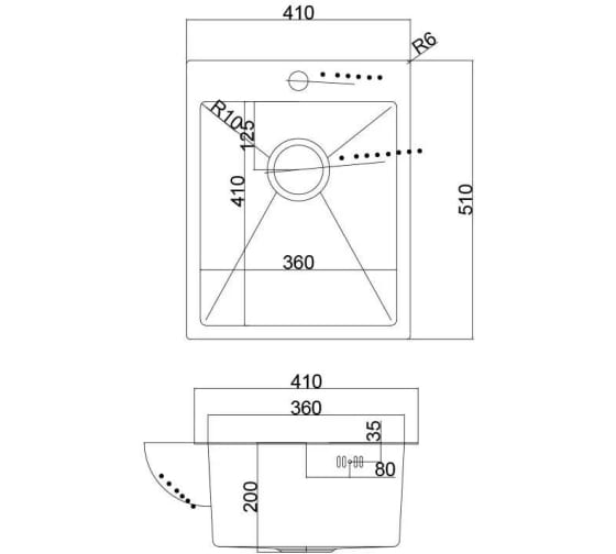 Имеет R5 радиус закругления с внешней стороны. Внутренние углы с R10 радиусом закругления.