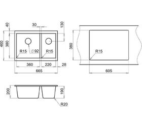 Кварцевая мойка EMAR EMQ-2665.PL Морион имеет две удобные чаши с популярными размерами.