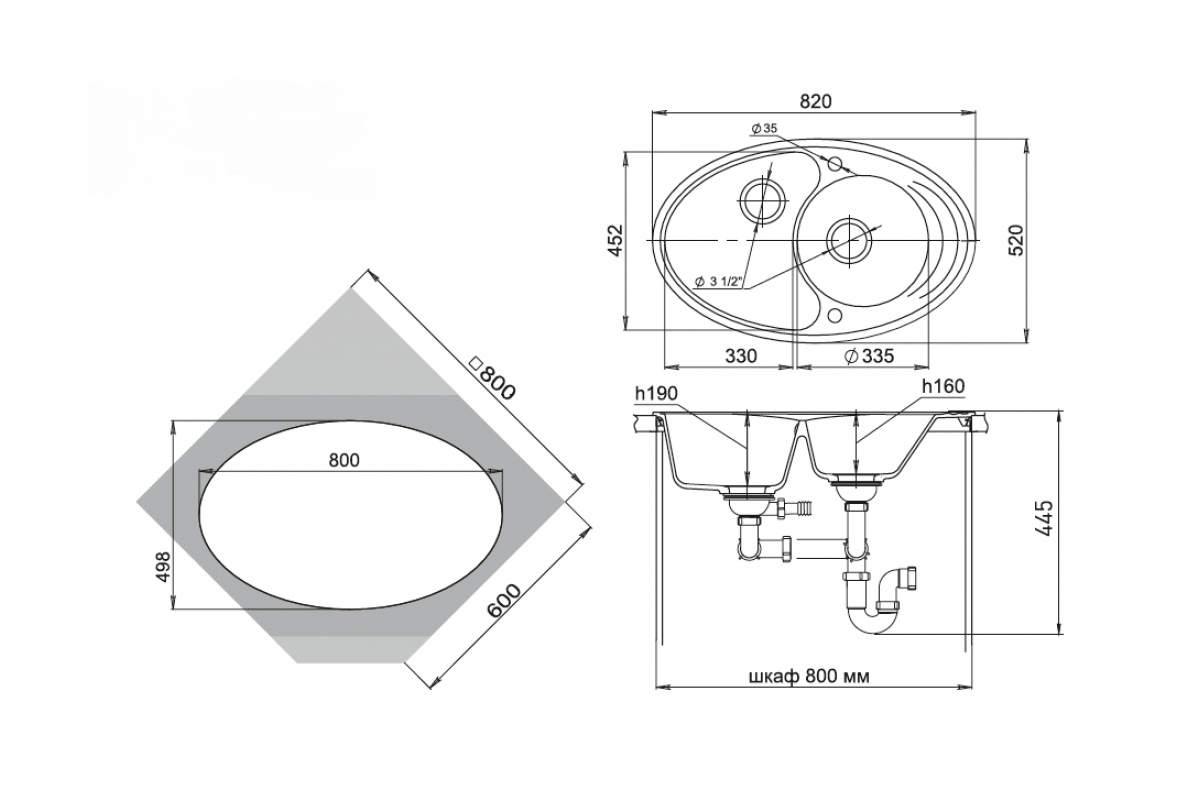 Технические характеристики EWIGSTEIN Elegant W90KF 1.5 чаши с крылом, 820х520 мм, иней