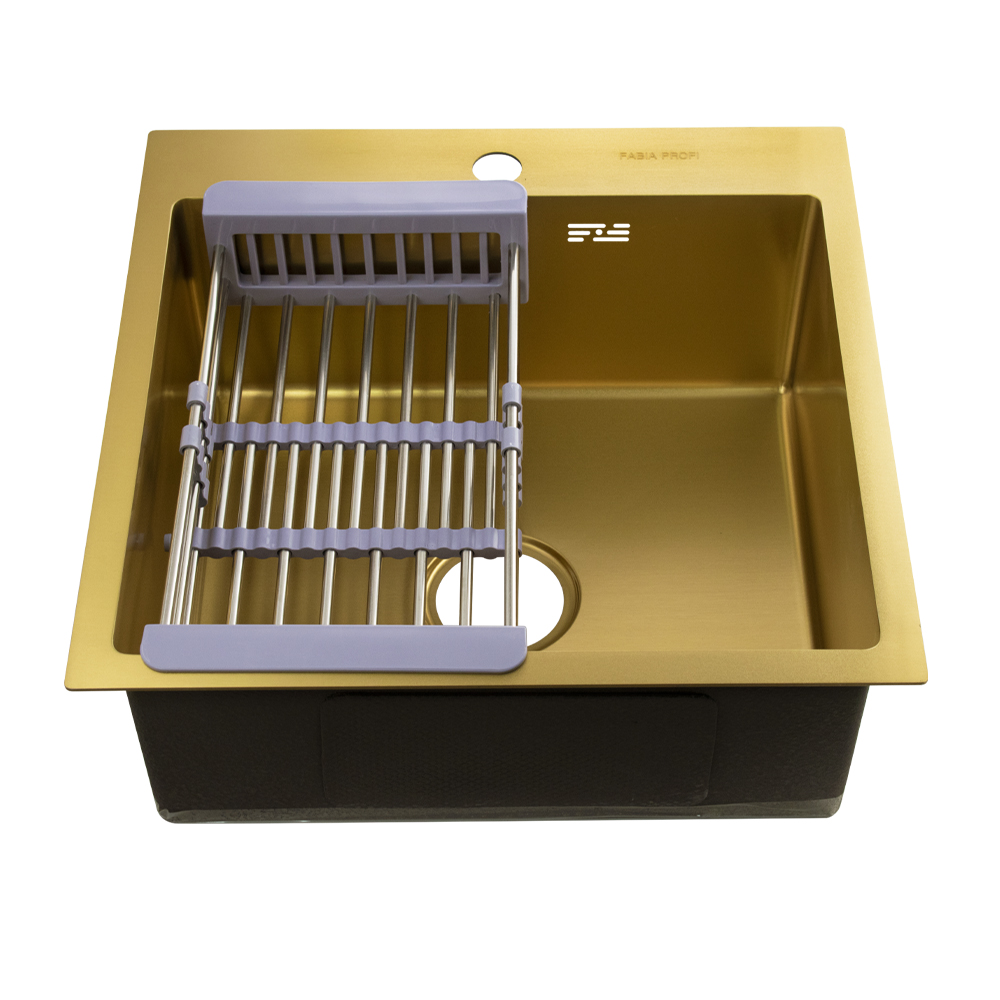 Мойка врезная 50 х 50 см, матовая, из нержавеющей стали. Цвет - золото.