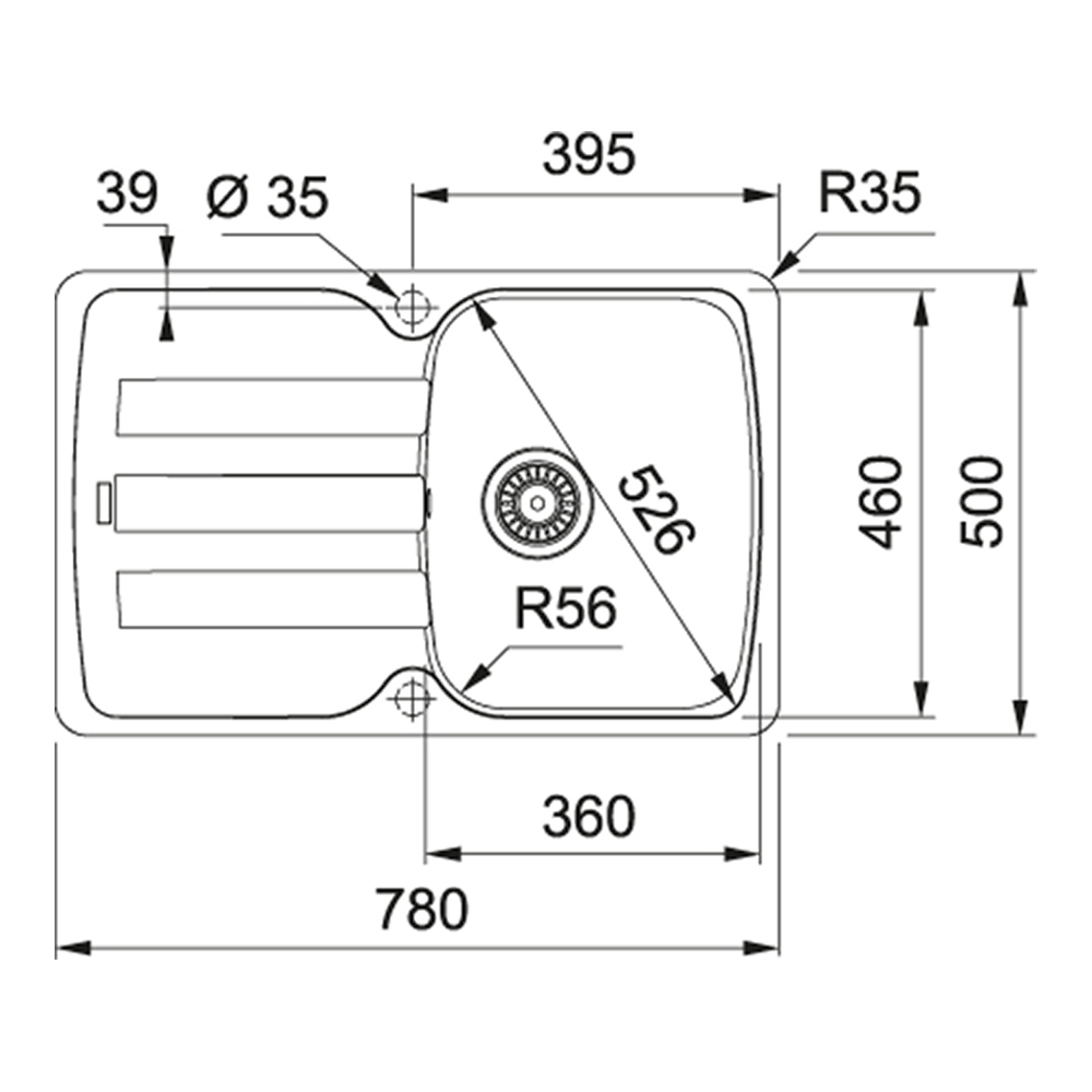 Радиус скругления углов чаши R56