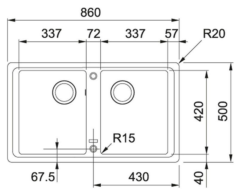 Размер мойки 860 x 500 мм