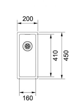 Размеры выреза, см: сверху 17 x 42; вровень 20.2 x 45.2; под столешницу 16 x 41