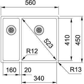 Размеры врезного отверстия (накладная) | 540x430 мм / угловой радиус врезки 10 мм / |