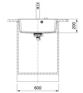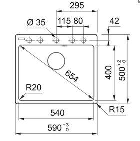 • Вырез для монтажа сверху 570 х 480 см, R15