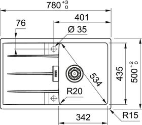 Вырез для монтажа сверху: 746 x 480 мм, R 15 мм