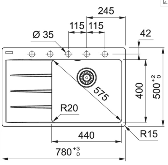 Вырез для монтажа сверху 746 х 480 см, R15